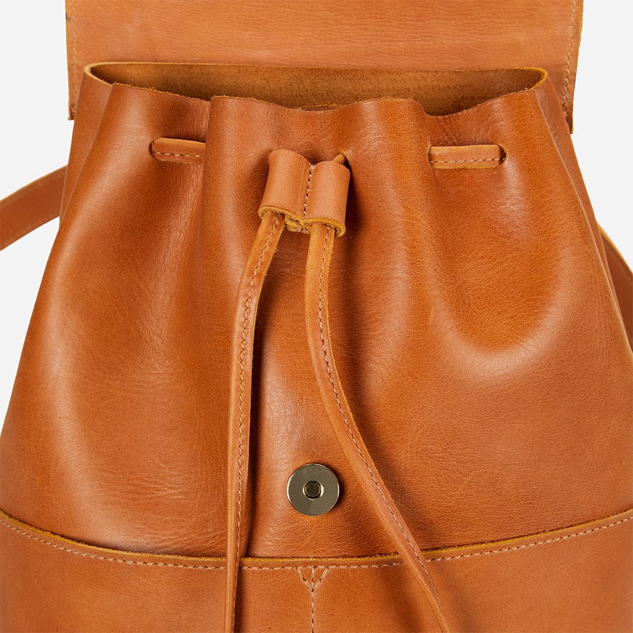 Crafted from premium full-grain leather. the Abby Backpack showcases the exquisite texture and durability that only high-quality leather can provide. Its rich. supple feel and natural variations make each piece unique. Designed for versatility and style. it features an interior pocket for organized storage. a D-ring for keys and clips. and a secure drawstring and magnet closure. Perfect for urban adventures. nature exploration. and everything in between. the Abby effortlessly combines the portability of a backpack with the elegance of a bucket bag.